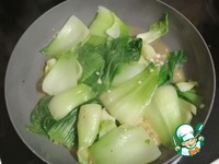 Помыть капусту и поломать ее на белые и зеленые части. Белые готовятся дольше и так их хорошо заметно. Мелко нарезать чеснок. Крахмал развести в небльшом количестве холодной воды 50 мл примерно. |