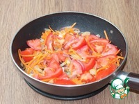 3. К пассеровке выкладываем порезанный дольками помидор, тушим минуты 3. |
