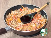 10. Блюдо готово! Основное блюдо - это ароматная, мягкая и нежная печень с подливой, и на гарнир - рассыпчатая, пряная греча с овощами. Очень вкусно! Приятного аппетита! |