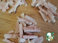 Сало или грудинку порезать полосками и разбить на 3 одинаковые части. 1/3 часть отложить. |