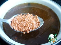 В последнюю очередь кладите красную чечевицу. Сколько, решайте сами, это зависит от желаемой густоты супа. Чечевица немного разбухает, учтите это. |