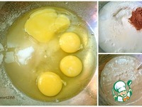 Приготовить шоколадный бисквит: яйца взбить с сахаром и солью не менее 7 минут. Включить разогреваться духовку до 180 градусов. К яичной смеси добавить ванилин, разрыхлитель, муку, какао. Перемешать. |
