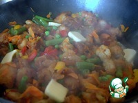 Раскалить масло "Олейна" в ВОКе и перенести курицу. |