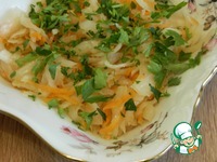 Описание: Квашеная капуста частый гость на нашем столе, особенно востребована она осенью. Этот витаминный продукт с удовольствием поедается, а если из капусты приготовить легкий салат, то это еще разнообразит наше меню. Особенно хороша такая капуста приготовленная методом естественного сквашивания в течении 3-х дней, а не ускоренным способом. Именно такую я использую в своем салате.
