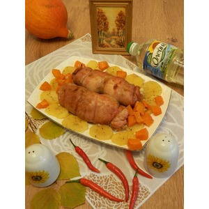 Описание: Очень вкусный мясной рулет хочу Вам предложить. Он готовится из филе кролика, но можно приготовить из куриной грудки или филе индейки, получится ни сколько не хуже, а может быть даже и нежнее. Начинка простая, яркая, делает рулет праздничным блюдом. Попробуйте и оцените.