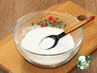 5. Муку смешиваем с разрыхлителем и просеиваем в жидкую смесь. |