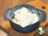 9. По 1 ст. ложке добавляем оставшуюся 1/2 часть белковой массы и аккуратно вмешиваем в тесто. Получается воздушное тесто. |