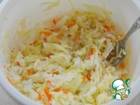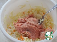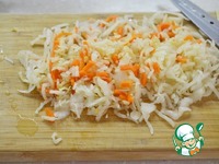 Капусту отожмите от рассола и немного порежьте, чтобы она была не слишком длинная. |