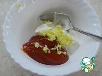 Смешайте сметану, томатную пасту и измельченный чеснок. |