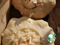 Из патиссонов удалить семена, аккуратно вырезать мякоть, оставив небольшую прослойку возле твердого слоя. Внутреннюю часть плода посолить и накрыть срезанной верхней частью. Оставить ~ на 30-40 мин. |
