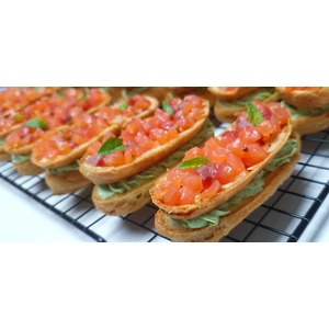 Описание: Предлагаю закусочные эклеры с базиликовым кремом и слабосоленой семгой