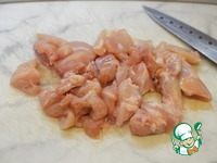 Курицу помойте, нарежьте на кусочки. |
