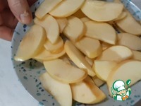 Выкладываем яблочные слайсы. Складываем кружочки с яблоками друг на друга по 2 кружочка. |