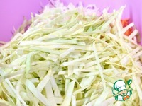 Капусту нашинкуем, немного присолим и перемешаем. |