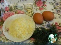 Не забудем яйца, чуть-чуть растительного масла, зелень и натертый на терке твердый сыр. |