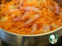 Затем в кастрюлю добавим овощи с грудинкой и дадим супу покипеть еще 5 минут. |