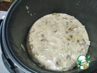 Добавляем в чашу воду, сметану, специи и грибы- Режим "Тушение" 40 минут. |