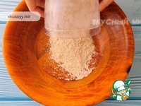 Затем эту массу соединяем с овсянкой (уже овсяная мука), добавляем разрыхлитель и перемешаем до однородной массы. Получается мягкое тесто как пластилин. |