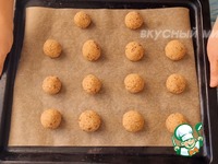 Из этого теста делаем небольшие шарики (чуть больше грецкого ореха). Застелить противень пергаментом, выкладываем шарики и выпекаем при 180° примерно 20минут. |