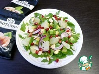 Описание: Сочный, лёгкий, яркий и очень вкусный салат для девочек. Взрыв ярких фруктовых вкусов и хруст орешков. Никакого мяса в салате нет.