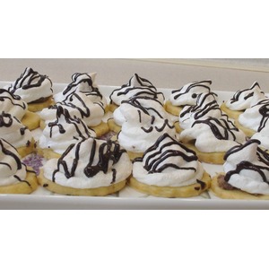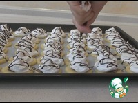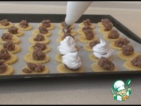 Сверху с помощью кондитерского мешка выдавливаем безе формируя шапочку. Отправляем в разогретую до 170 градусов духовку, запекаем 15-20 минут. |