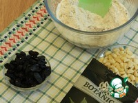 Добавим к мучной смеси изюм и измельченный миндаль. |