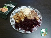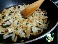 Лук нарезать и обжарить до золотистого цвета. Растительного масла особо не жалейте, это будет заправка для салата. Для вкуса и аромата при жарке лука я всегда добавляю щепотку сахара. |