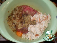 Смешать фарш, булку, лук, пропущенный через пресс чеснок, соль, перец, яйцо |