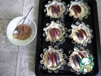 Просеиваем муку с разрыхлителем. Добавляем щепотку соли. Всё соединяем тщательно. Тесто средней густоты (см. на фото), которое удобней будет выкладывать ложкой в формочки. |
