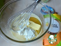 Добавить сметану, растительное и мягкое сливочное масло. Взбить. |
