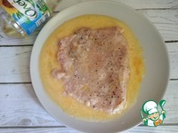 Вылила в тарелку яичную смесь и обмакнула обваленный в муке первый шницель. |