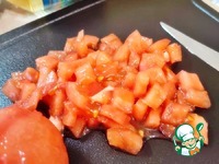 Подготовьте овощи. На помидорах сделайте крестообразный надрез. Залейте кипятком. Через 2 минуты охладите под холодной водой, затем снимите кожицу. |