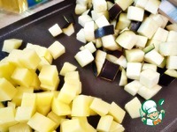 Картофель и баклажан порежьте одинаковыми кубиками. |