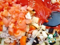 Добавьте баклажаны, болгарский перец и картофель. На сильном огне доведите овощи до полуготовности. |