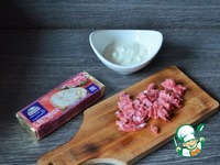 Колбасу нарезать мелко. |