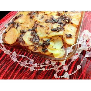Картофель помыть, почистить и нарезать тонкими пластинками |