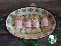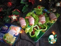 Описание: Такую закуску люблю тёплую. Делается она быстро и подойдёт на стол неожиданно пришедшим гостям. Через 15 минут при помощи СВЧ у вас получится замечательная и очень вкусная закуска - рулетики из сырокопчёного бекона с бутербродным сыром и салями. Можно использовать как горячее, если побольше сделать, и подать с каким-то гарниром.