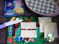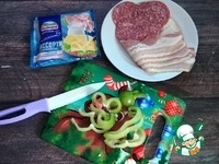 Пластинки сыра разрезаем на 2 части. Они как раз будут в ширину бекона. |