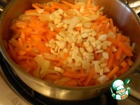 К зажарке добавим чеснок, еще немного все вместе обжарим. |