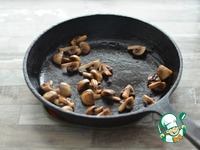 Мелкие шампиньоны разрежьте на 4 части и поджарьте на раскалённом масле около 5 минут |