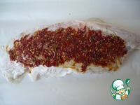 Верх филе грудки индейки натереть приготовленной смесью приправ. |