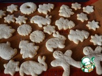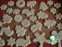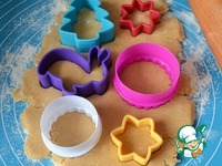 Разогреть духовку. Тесто частями раскатывать до 0,5 см. толщиной, формочками вырезать заготовки. |