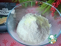 Смешать оба вида муки, разрыхлитель. Если у Вас нет цельнозерновой муки, возьмите всего 300-320г. пшеничной. |