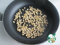 На сухой сковороде слегка обжарить кедровые орехи и затем переложить их на тарелку для остывания. Автор рецепта рекомендовала обжаривать только кедровые орехи, но по желанию можно обжарить и грецкие. |