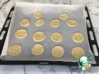 Раскатываем тесто тонким слоем. c помощью стакана вырезаем кружочки. Кладем их на противень и каждый кружочек накалываем вилкой. |
