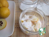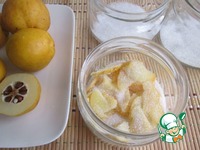 Постучать банкой и сахар равномерно распределится. Затем добавлять, чередуя, слои айвы японской и сахара. Сверху должен быть слой сахара. |
