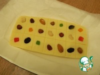 Разровняем ее до одинаковой толщины, вдавим в массу орехи, цукаты. |