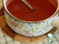 Добавим к клубничной массе сахар и поставим на огонь. |