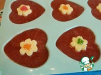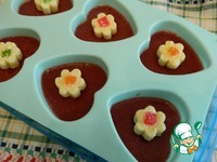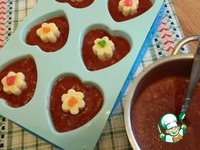 Заполним формочки на 2/3 ягодной массой, поставим в холодильник, минут на 15-20 пока желе начнет застывать. |