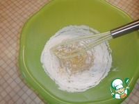 Постепенно добавить просеянную муку вместе с разрыхлителем теста. Замесить тесто, скатать в шар и немного дать отдохнуть. |